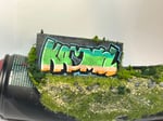 A ‘Krumbl’ graffiti peice worn and weathered inside a 600ml spray can