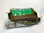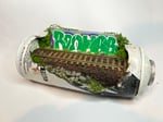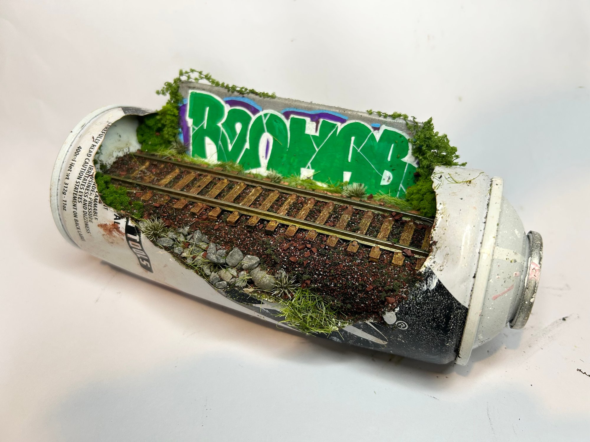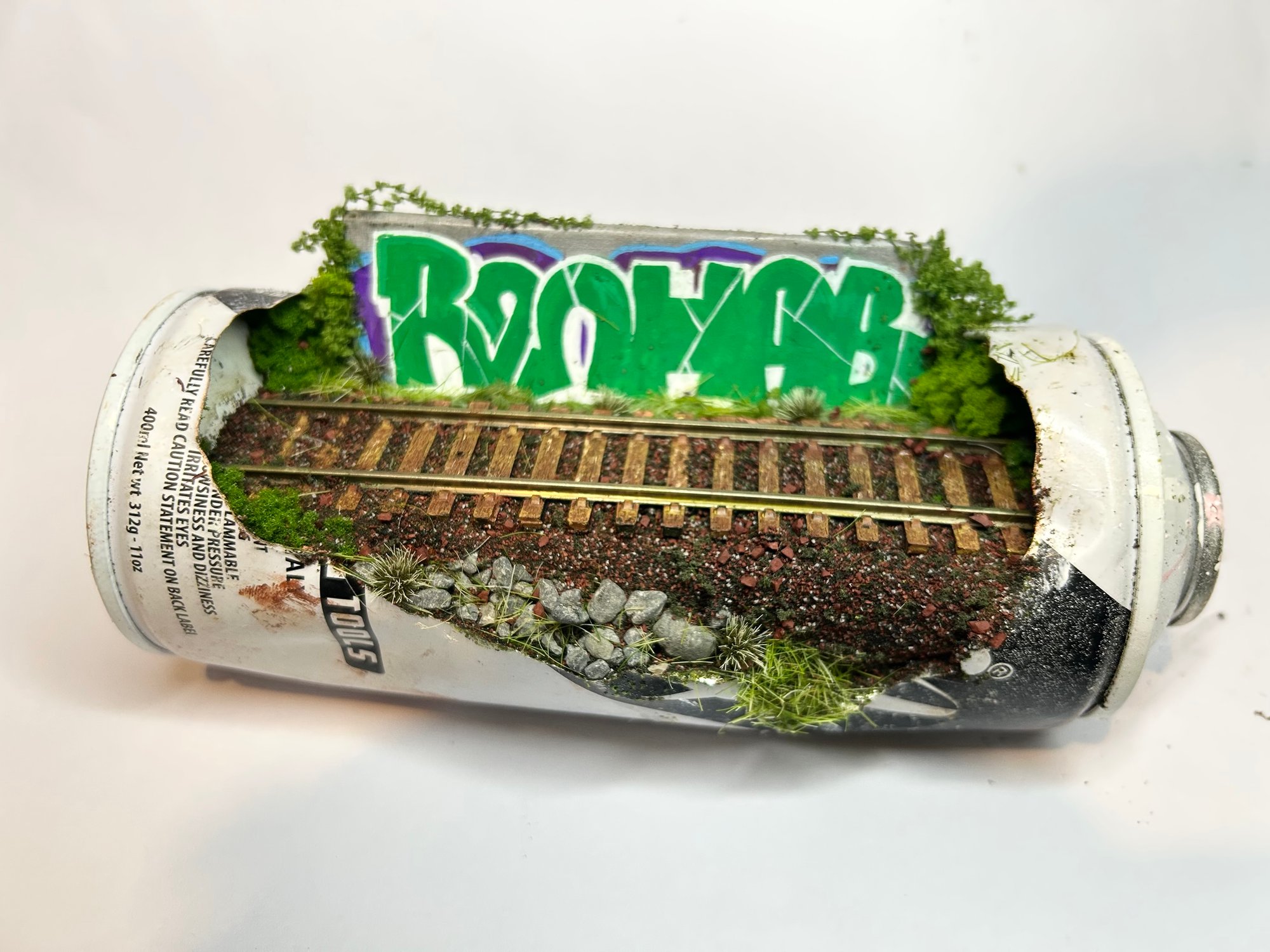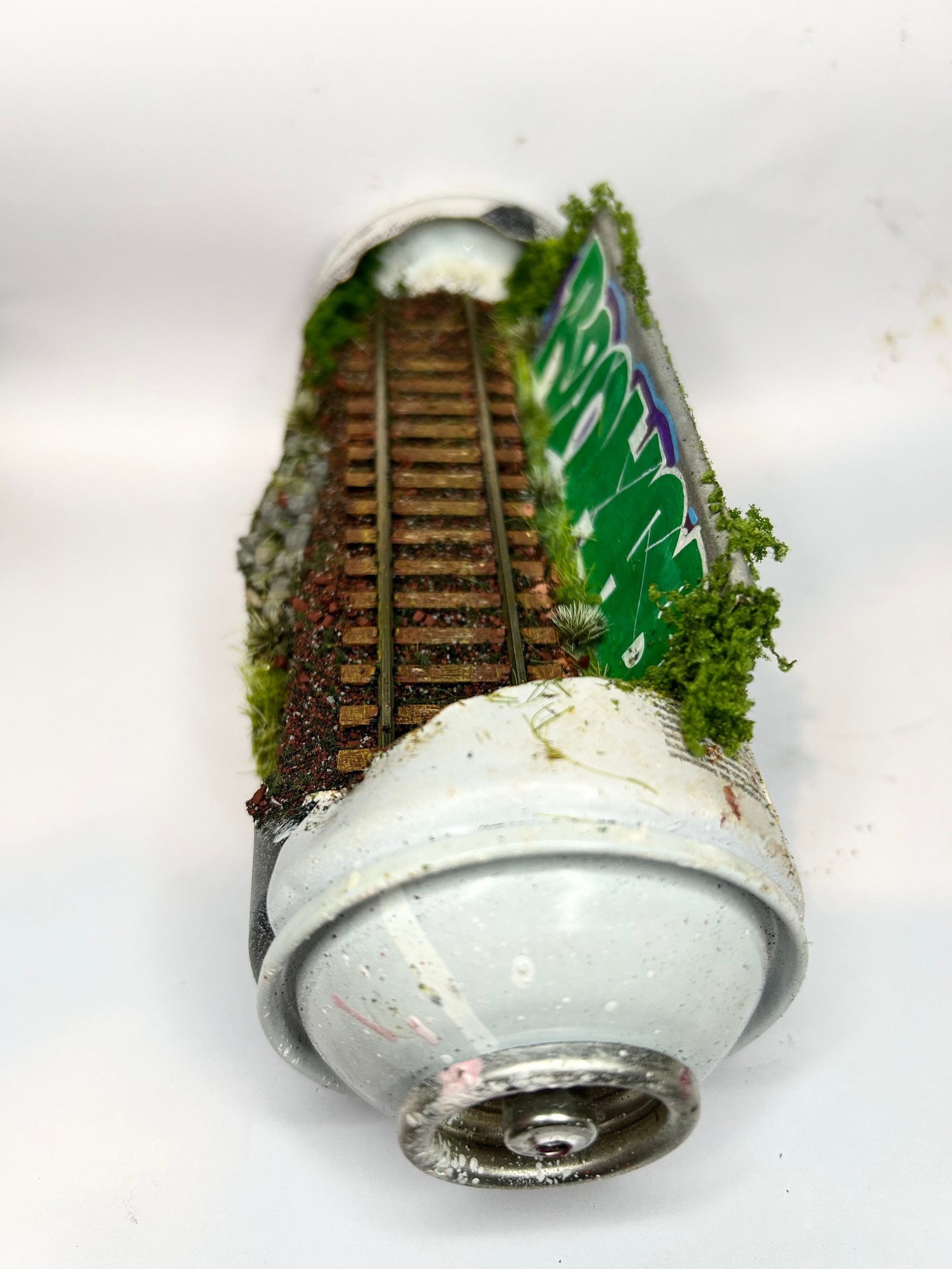 An overgrown stretch of railway with a bold piece sitting just behind It