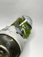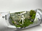 A spray can diorama featuring a telescope set against a stone wall, surrounded by grass and rocks - a miniature spot for stargazing.