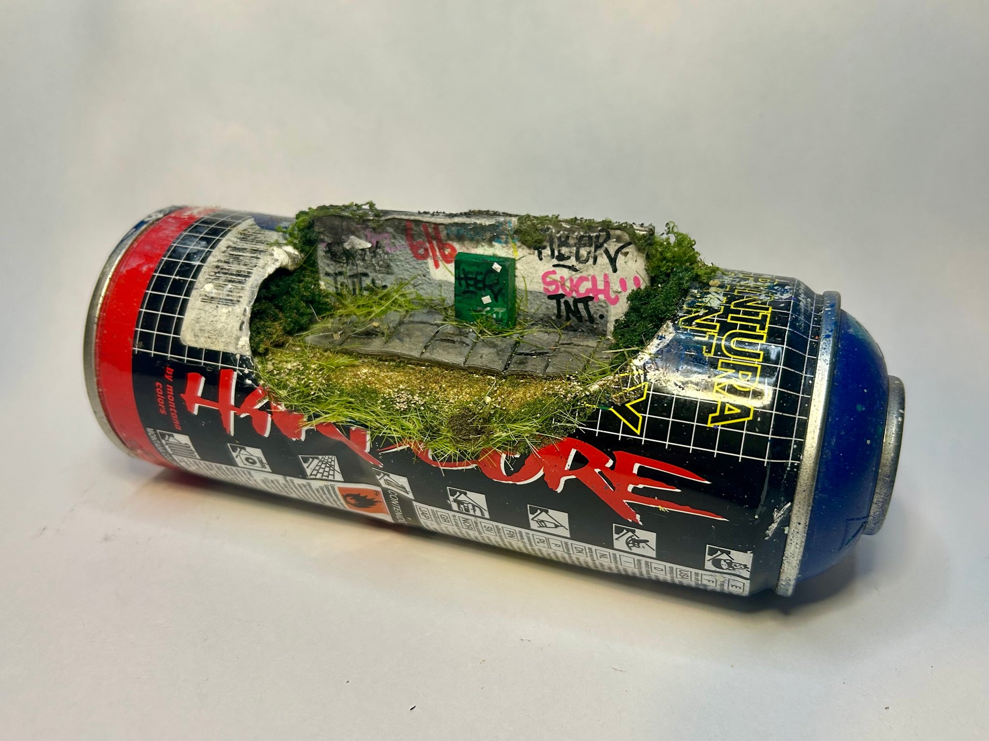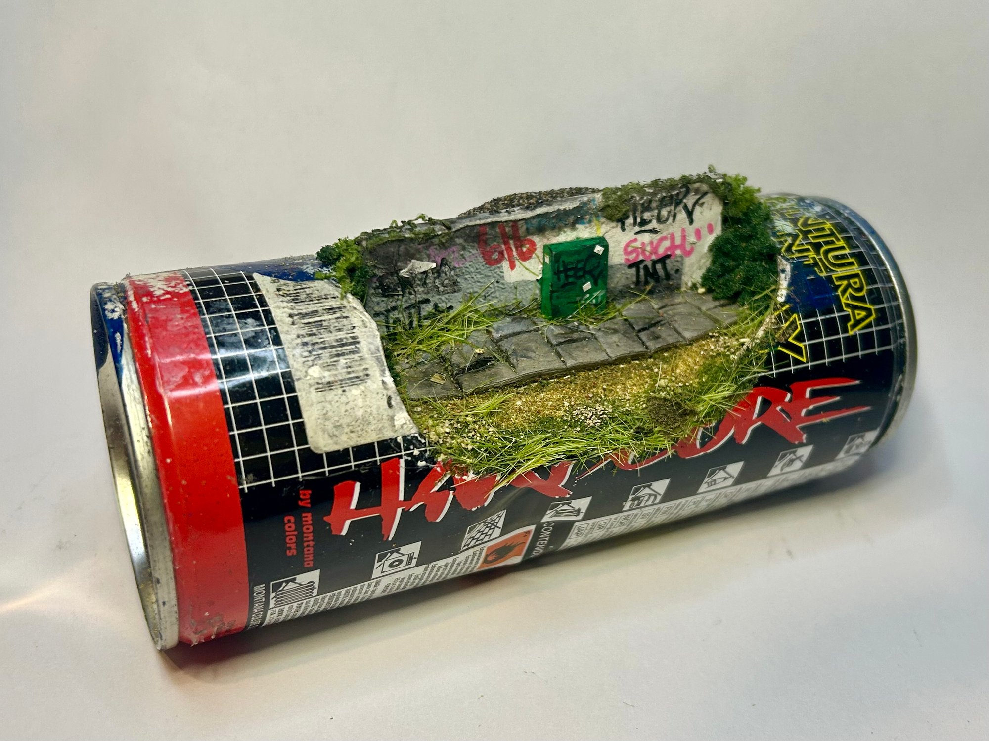 A small stretch of pavement with a battered green electric box, tagged, weathered, and ignored.