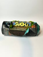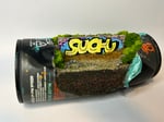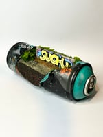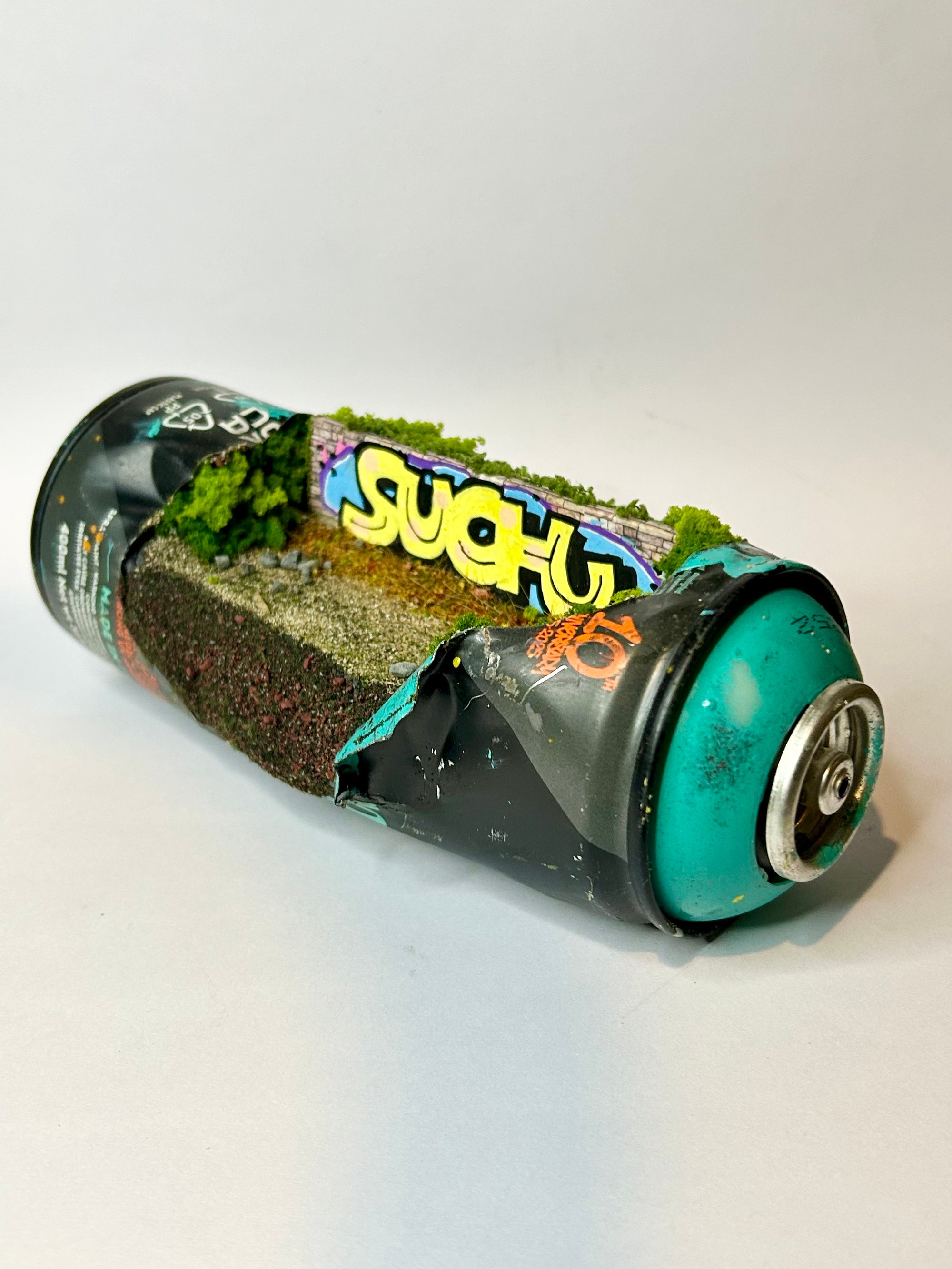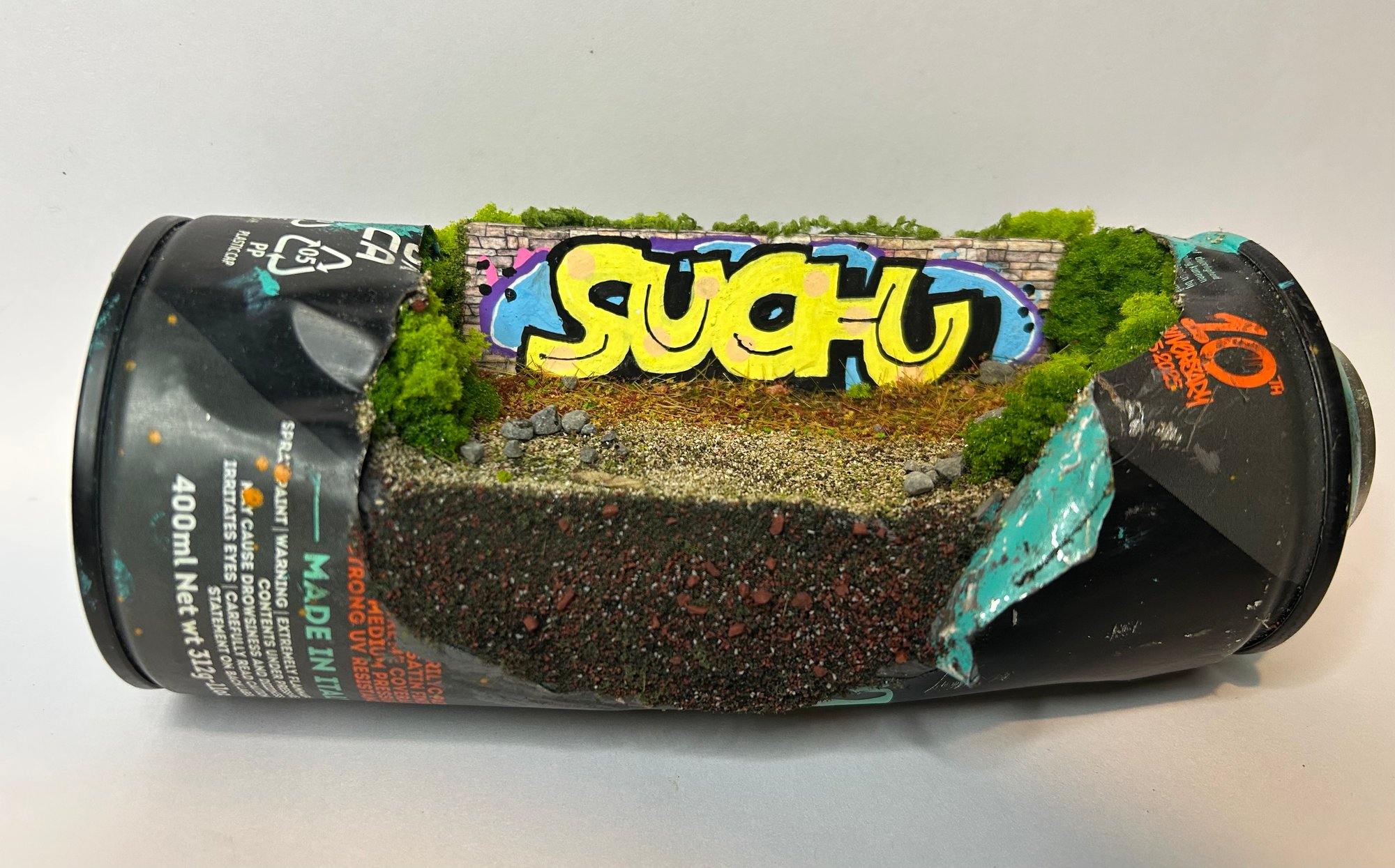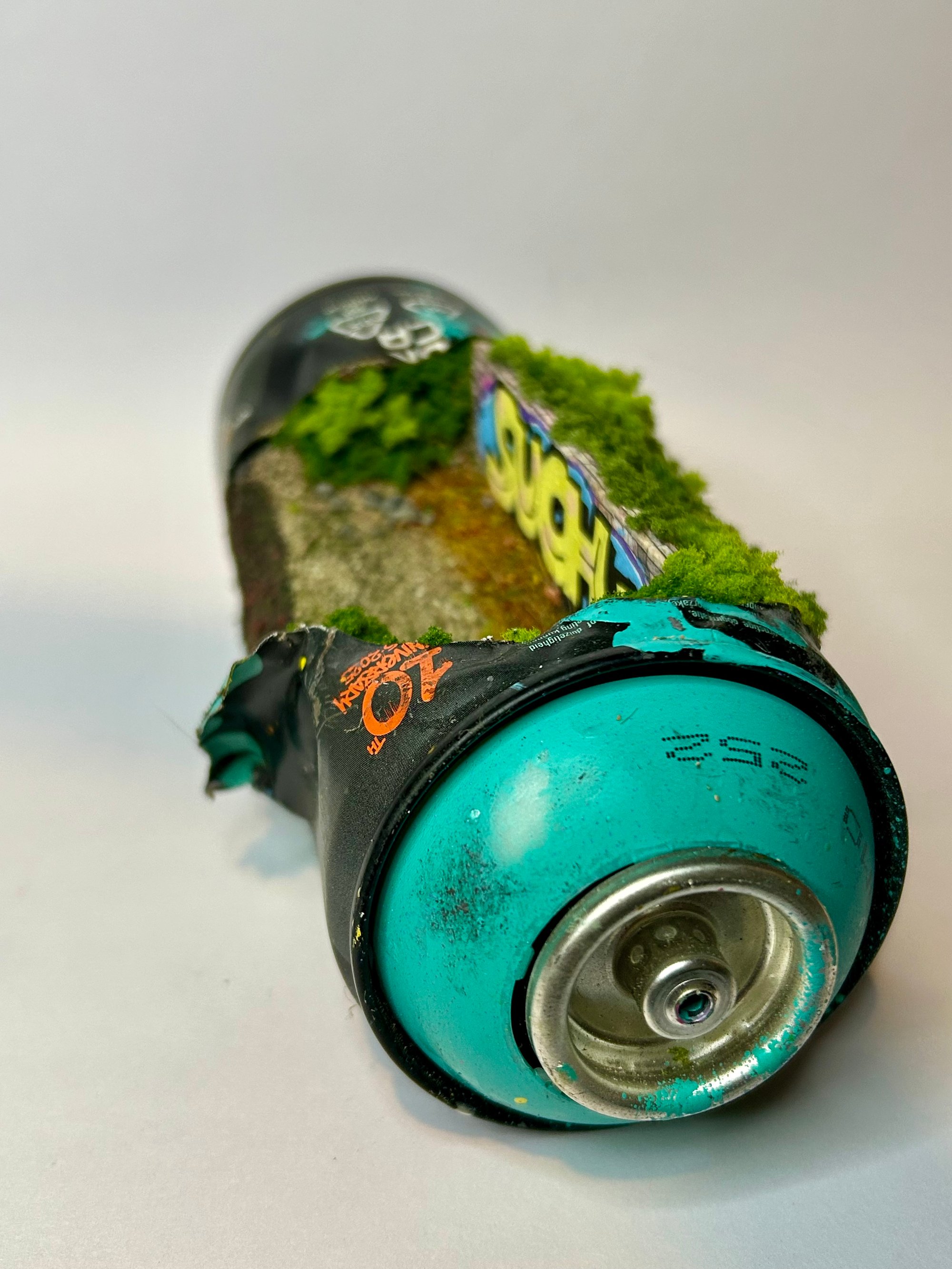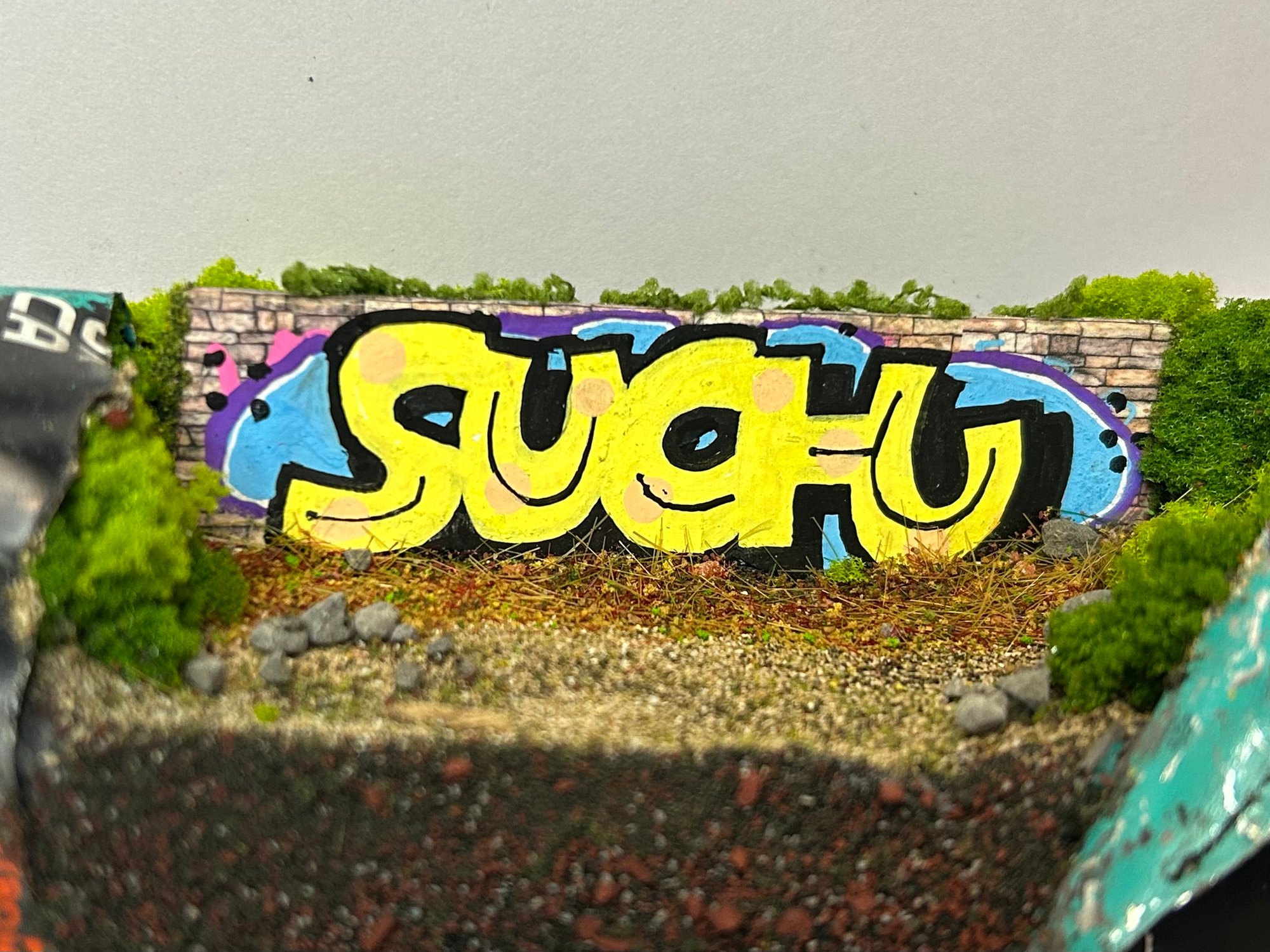 A bright painted wall beside a worn path, framed with moss and rubble.